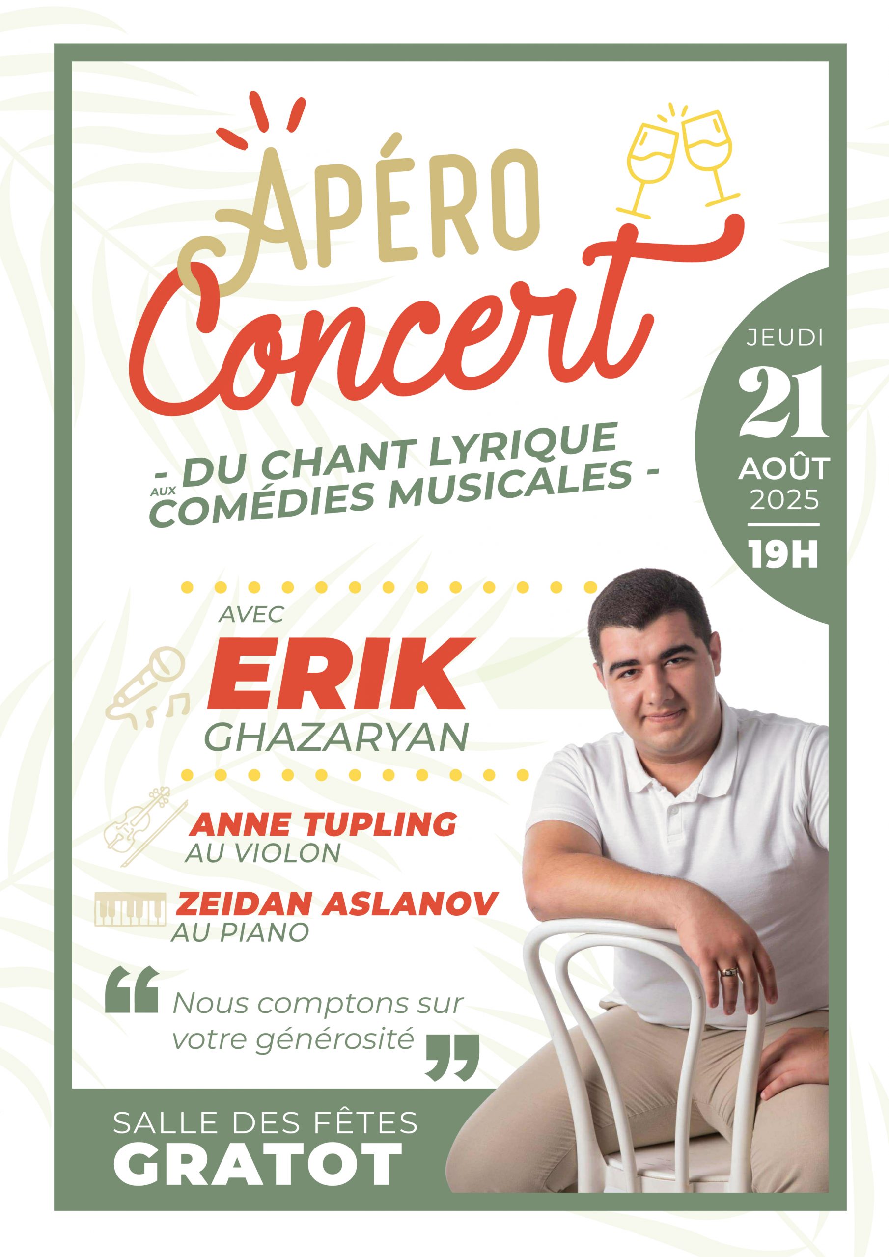 LA VOIX D’ERIK Concert de soutien à Erik, pour la poursuite de son parcours musical, conservatoire de Caen et concours.